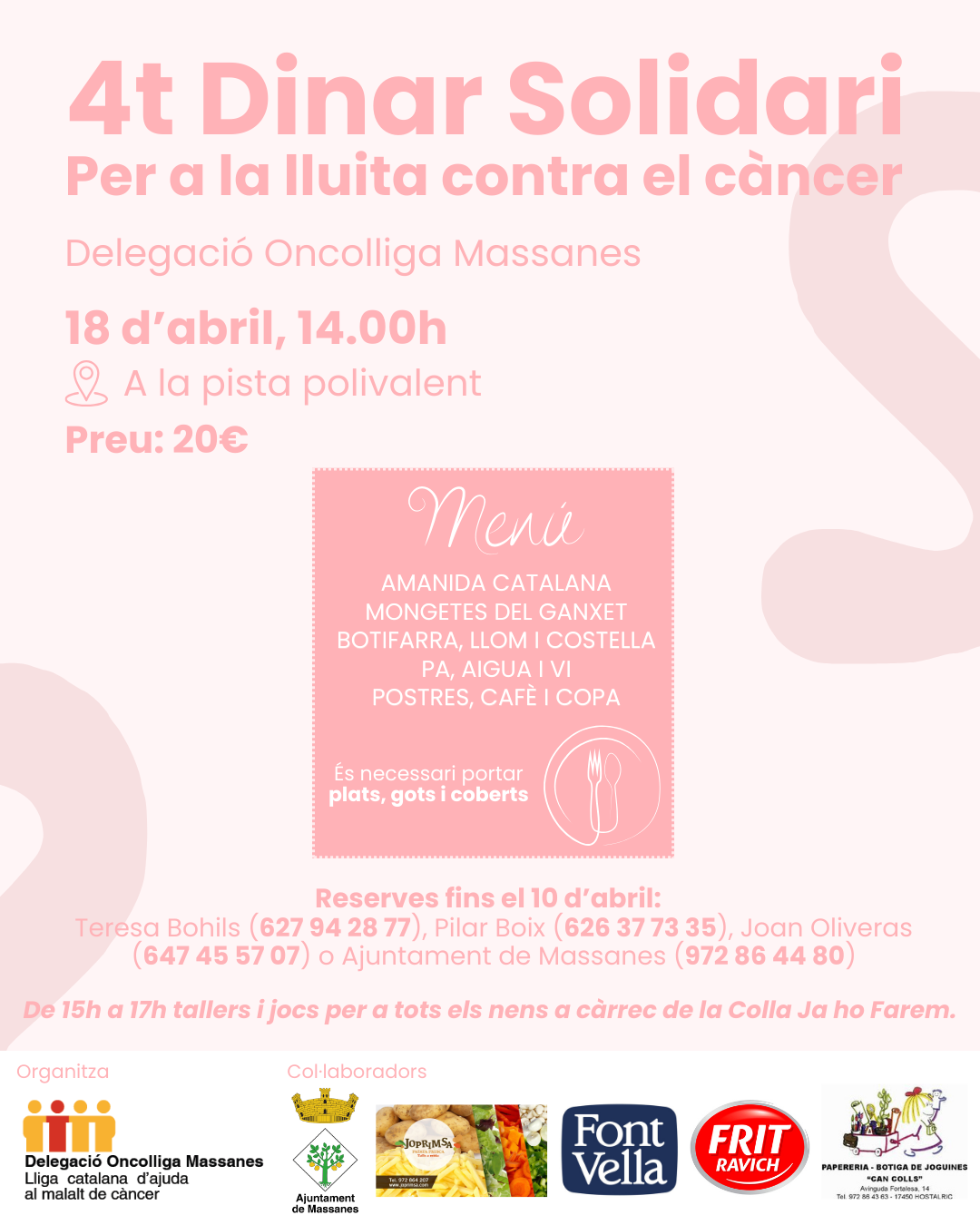 Un dels actes programats per a la Fira de Sant Jordi serà la quarta edició del Dinar Solidari per a la lluita contra el càncer.