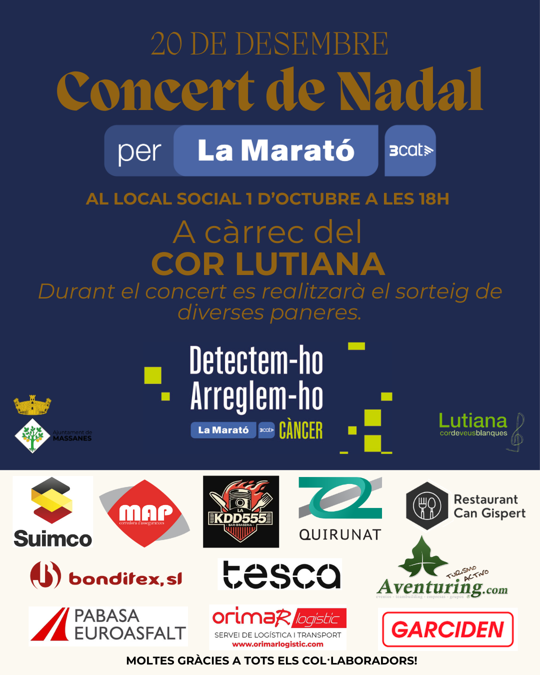 Aquest dissabte 20 de desembre tenim una cita amb La Marató de 3Cat. El Cor Lutiana serà l’encarregat d’inaugurar el Nadal a Massanes amb el seu concert ‘Acròstic’.