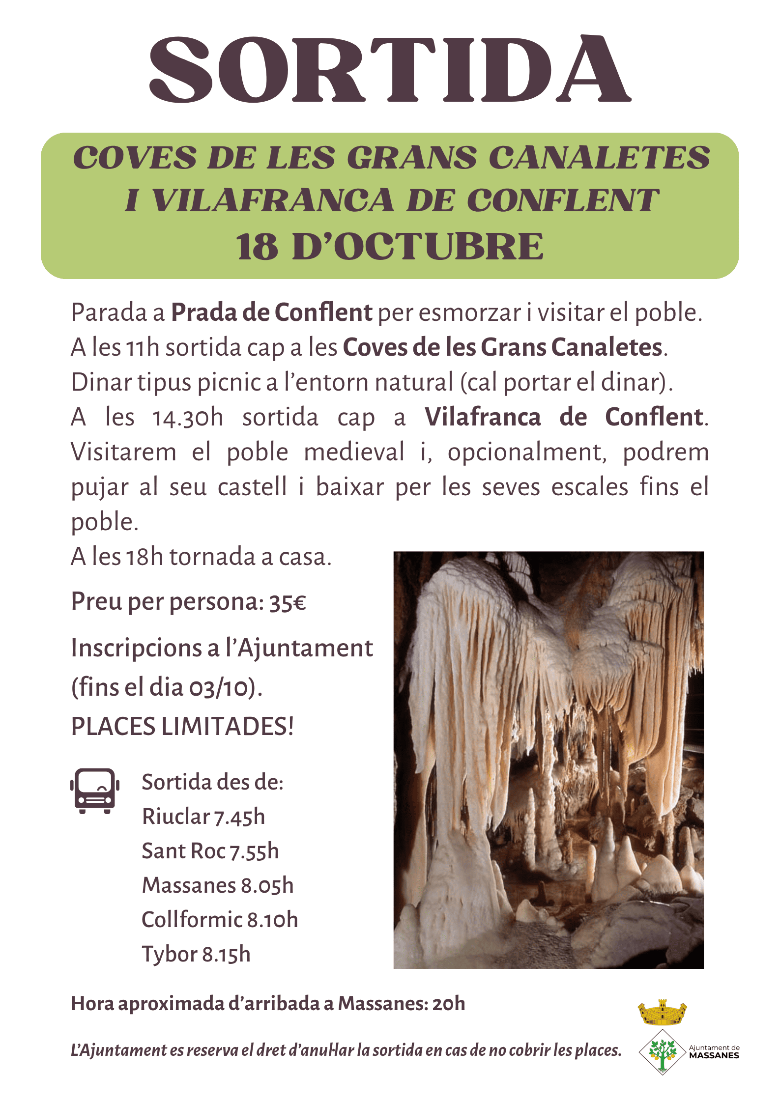 📢 Vols visitar les Coves de les Grans Canaletes i Vilafranca de Conflent? Participa a la sortida cultural que organitza l’Ajuntament pel dia 18 d’octubre.