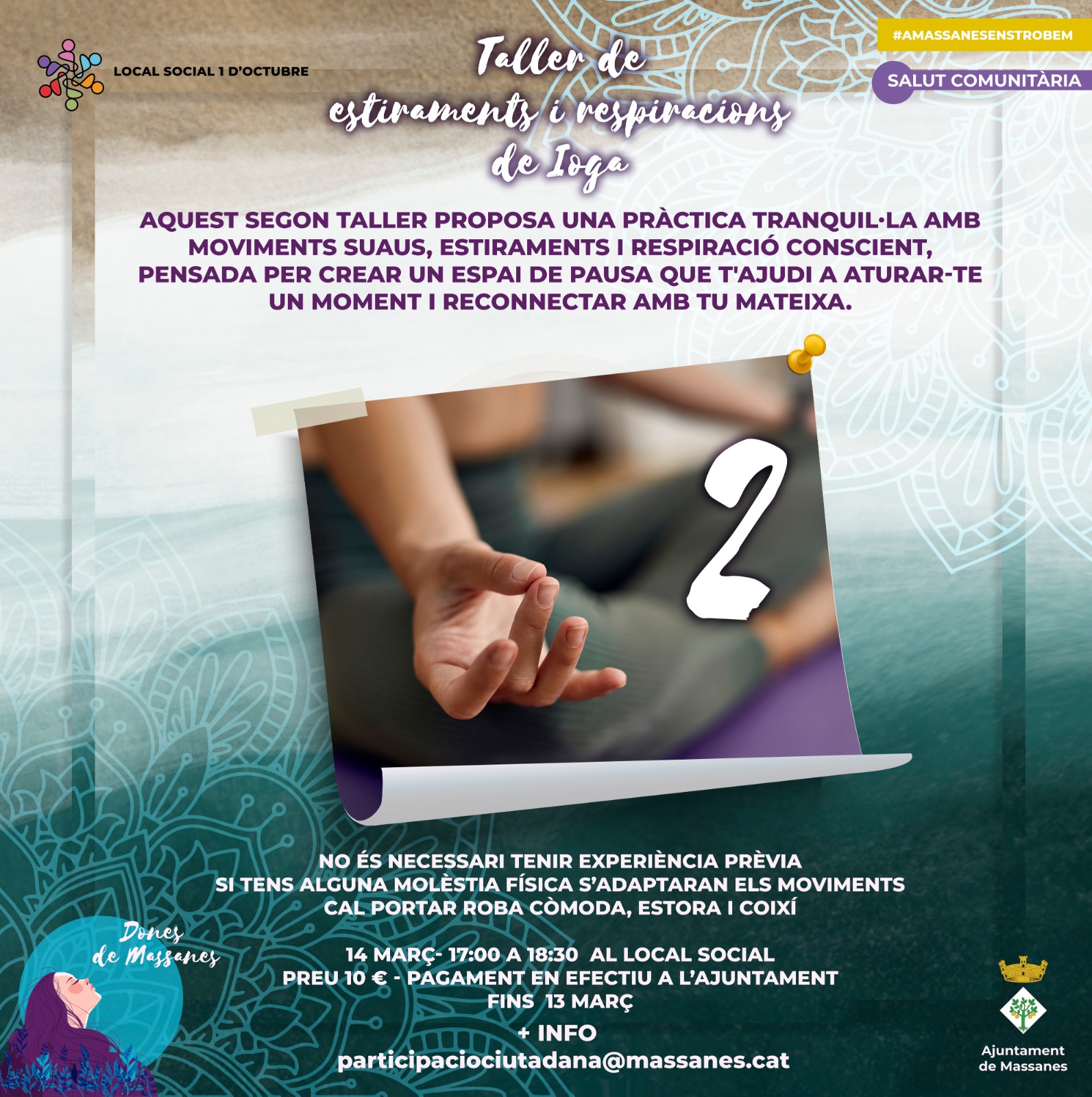 El dissabte 14 de març participa al taller de ioga al Local Social 1 d’octubre (de 17h a 18.30h). No cal tenir experiència prèvia, només la voluntat de dedicar-te un moment per a tu.